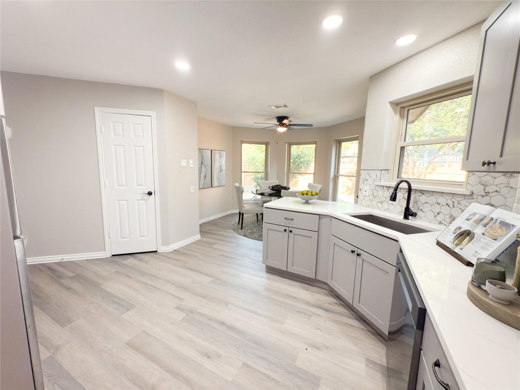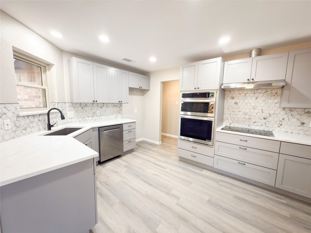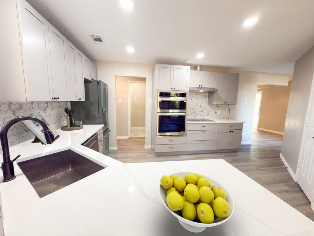 Completely Renovated Corner-Lot Home – New Roof, HVAC, & Luxury Finishes. Combines modern finishes with timeless charm, situated on a large corner lot with fresh sod and a fully fenced perimeter, this property offers both privacy and curb appeal. Inside, you’ll find a stunning renovation featuring brand-new flooring, sleek quartz countertops, and fully updated bathrooms both with dual sinks that bring a touch of luxury to everyday living. The kitchen shines with brand-new stainless-steel appliances, perfect for home chefs and entertainers alike. Whether you’re relaxing indoors or enjoying the spacious outdoor setting, this move-in-ready home has it all! Minutes to Waterview Park and Windmill Nature Preserve! Don’t miss your chance to own a turn-key property in a desirable Duncanville neighborhood!